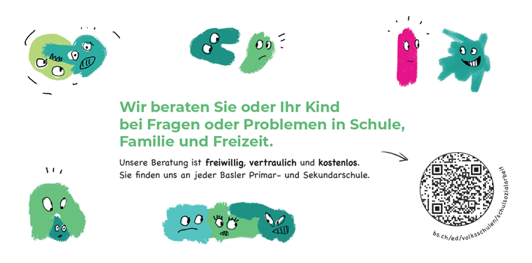 Schulsozialarbeitende beraten Jugendliche und Eltern sowie Bezugspersonen im Umfeld Schule bei ihrem Anliegen und bei sozialen Fragen und Problemen. Beratungsgespräche sind freiwillig, kostenlos und vertraulich.